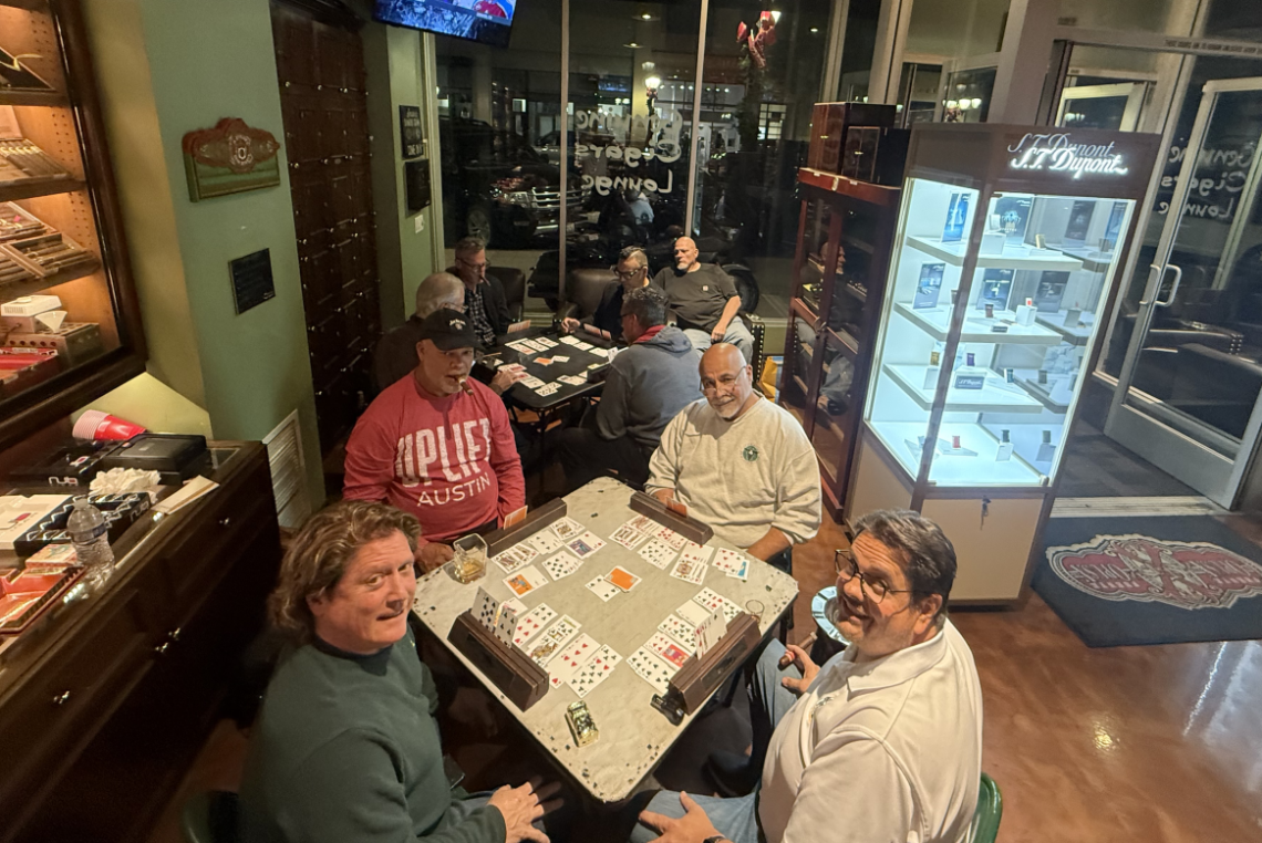 The 2025 Screwie Louie Tournament took place on November 4th at Genuine Cigars. Lorenzo organized the event with Genuine Cigars owner Jean Zamira, bringing together nine Screwie regulars. Two tables were set up, and everyone drew cards to determine their table placement — high cards went to one table, low cards to the other. Each table then drew for teams, and whoever became your teammate stayed your teammate throughout the tournament. Teams were: Louie and Mark, then replaced by Arturo Steve and Tim Lambo Mike and Mike B Kirk and Lorenzo Best two out of three games moved into the championship round. Louie and Arturo scored back-to-back wins over Steve…