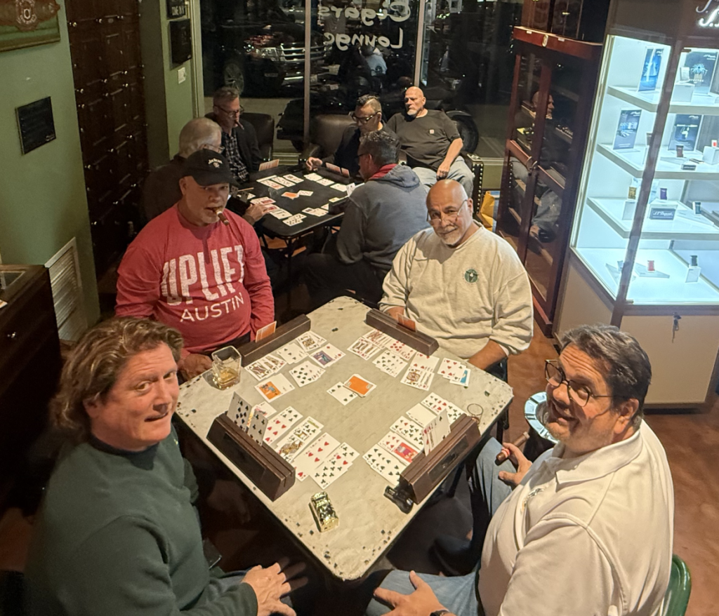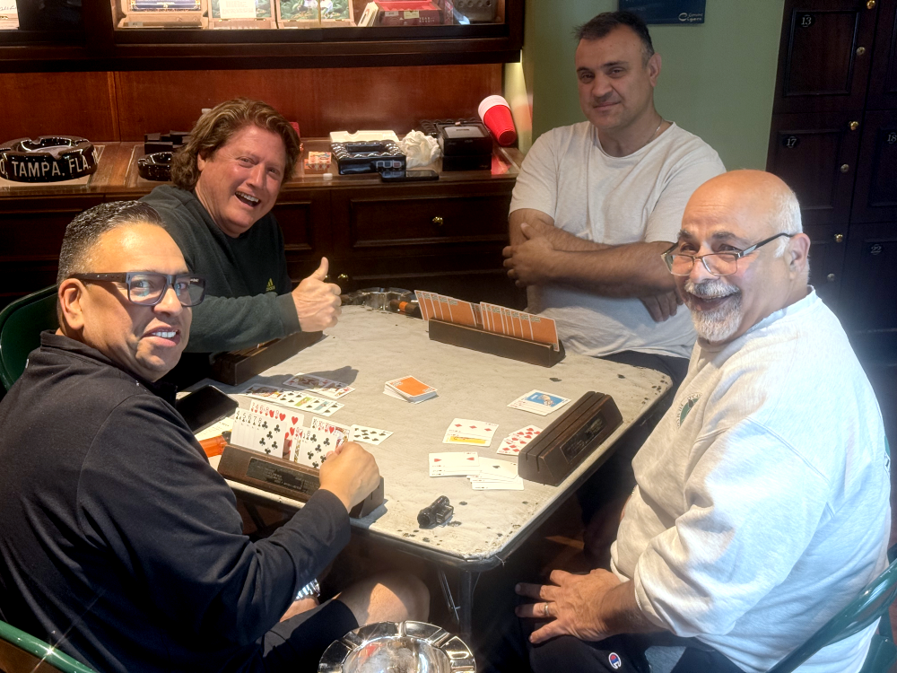 The 2025 Screwie Louie Tournament took place on November 4th at Genuine Cigars. Lorenzo organized the event with Genuine Cigars owner Jean Zamira, bringing together nine Screwie regulars. Two tables were set up, and everyone drew cards to determine their table placement — high cards went to one table, low cards to the other. Each table then drew for teams, and whoever became your teammate stayed your teammate throughout the tournament.